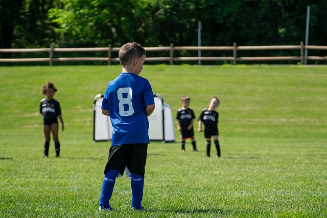 在足球场上